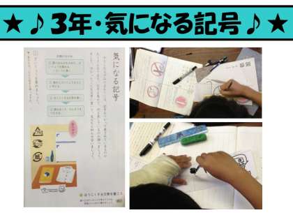 身近にある気になる記号について,調べ(おうちの人に聞く),そして,それをほうこく文章にする学習です。