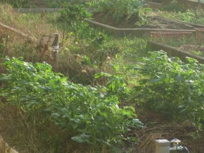おはようございます!! 昨日と打って変って,朝日がまぶしい朝を迎えました。畑では,ジャガイモが最盛期のように育っています。春のジャガイモの取り忘れです。いもの育ちが気になります。