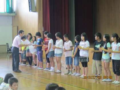そして,朝会終了後には虫歯のなかった6年生13名が健康な歯であるという表彰を全校児童の前で受けました。13名というのは少し少ないような気もしますが…歯は一生の友達です。表彰された子もされなかった子も食後の歯磨きを一生懸命して歯を大切にしてほしいですね。