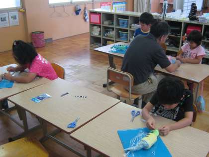 うちわを持ち帰った後,職員室前に飾りますので,どうぞご覧ください。