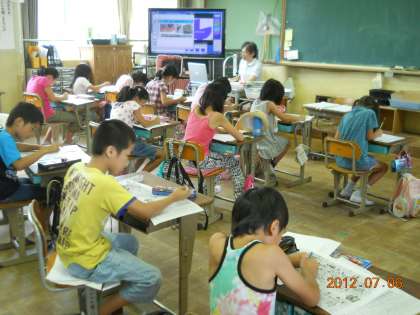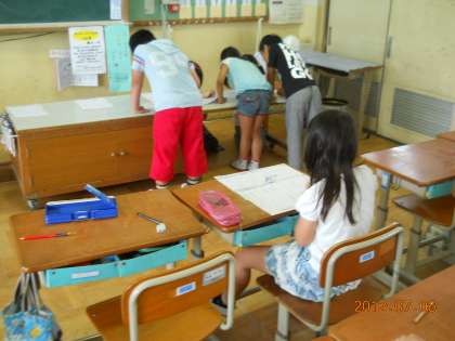 ねらいは「自学自習」なので,自分で丸つけをしたり次々にプリントを取りに行ったりと,静かに各自で学習を進めていきます。