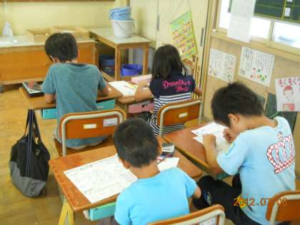 2年生と3年生は教室で主にプリント学習に取り組みました。