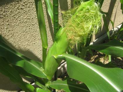 トウモロコシは,実ができて,だんだん太くなってきました。