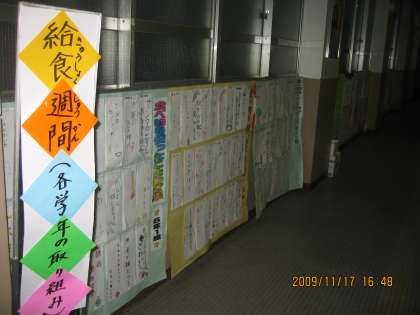 おはようございます!! 今週は「給食週間」です。学年の取組で,様々な掲示がみられます。食べ物俳句や魚偏の漢字,食べたい給食,食べ物を使ったことわざなど,なかなか楽しいものがみられます。ぜひご覧ください。