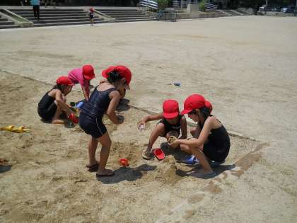 ぺットボトルのシャワーや,砂のお城・泥だんご…いろいろな友だちとの関わりがみられました♪