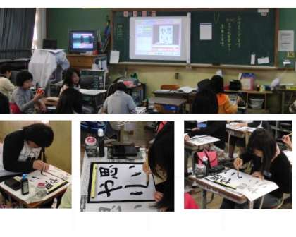 デジタルコンテンツを使って毛筆習字の学習をしました。