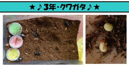 教室にいくと,クワガタの飼育箱のまわりに子どもたちが集まっています。