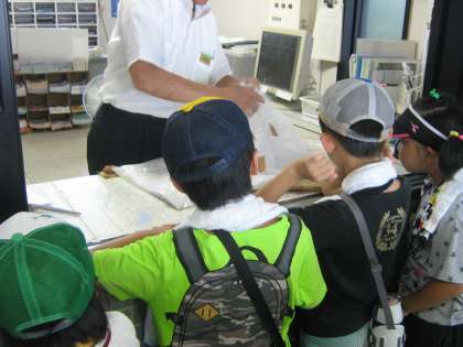 「美豆小学校のつばさ学級です。京阪電車の絵を描いたので届けに来ました。よろしくお願いします。」