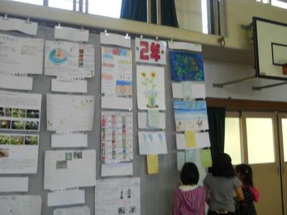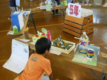 今年も夏休みにつくった絵や工作などを集めた「夏休み作品展」が体育館にて行われました。それぞれの作品から,どの学年のどの子も一生懸命に頑張ってつくった様子がうかがえます。