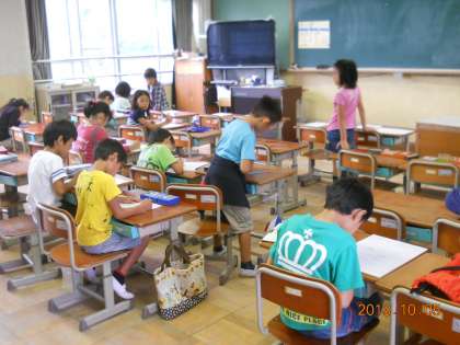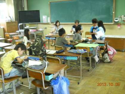 今回のサタデースクールは高学年はビオトープ学習,低学年はプリント学習です。