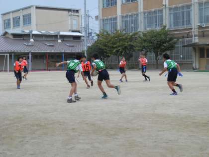 10月5日(土)に明親小学校と,向島二の丸小学校とタグラグビー部の合同練習会を行いました