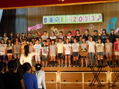 明親小学校・大淀中学校・美豆小学校の三校合同で音楽を通して交流を深めました。