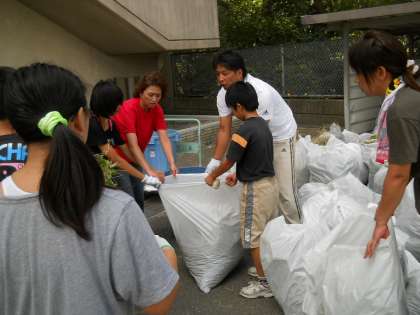 運動場に集合し,趣旨や説明を聞いた後,花壇,体育館周辺等各学年に割り当てられた分担場所に移動し,夏の間にはびこった雑草を手作業で抜いていきました。20分ほどの作業時間でしたが,すごい勢いで雑草が抜かれ,運動場・体育館周辺や花壇が,見る見るうちにすっきりきれいになっていきました。早く終わった学年は運動場の石拾いをしてくれました。開始20分で70L入りのポリ袋約40袋の雑草が運ばれました。ゴミ袋いっぱいの雑草を運んできた子どもたちの顔は,どの子も充実感のある笑顔でした。がんばってきれいにしたんだよ,ということを語りかけてくれているような満足感のある顔でした。PTA・保護者・子ども達のがんばりのおかげでより気持ちよく運動会が迎えられそうです。