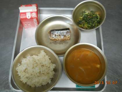 今日のさんまは給食調理員が早くからゆっくり火にかけているので、骨まで軟らかくなっており、全部食べる事ができます!!