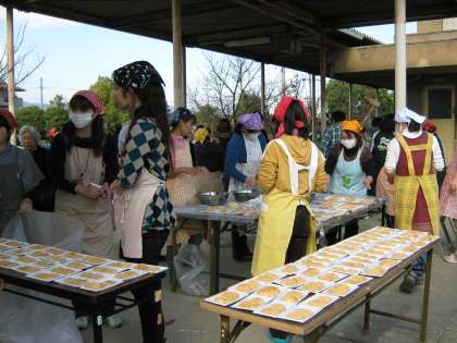 地域の方々,PTAの方々,教職員,子ども達(家族揃って)が楽しそうに参加しました。皆,美味しいお餅を頂き,大満足!