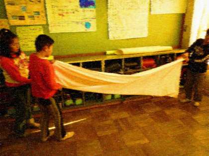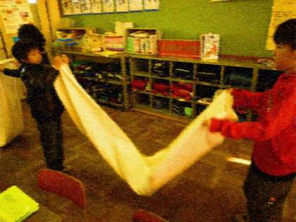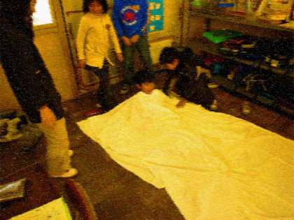 4年 山の家に向けて「シーツたたみ」 2009/12/07