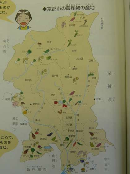 拡大提示をした写真を見ながら,京都市ではどの場所でどんな野菜が作られているのかを確認しました。