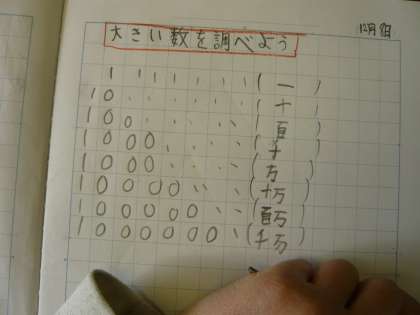 実際にノートへ書くと数字の大きさに驚いていました。
