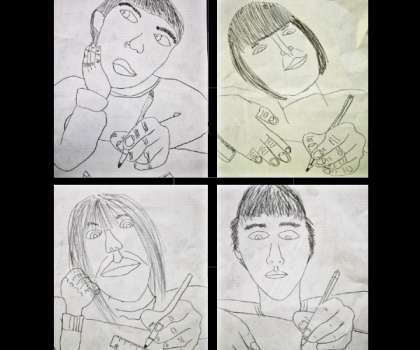 木版画「勉強するぼく・私」の下絵が完成しつつあります。