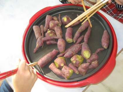最後に,ホットプレートで焼いて,やきいものできあがり!