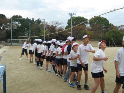 授業の最後に,クラス全員による大縄跳びに挑戦しました。