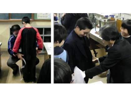 中学進学へむけて通学服の採寸がありました。サイズを測ってもらったり,制服を着せてもらったり,みんなとっても照れくさそうでした。