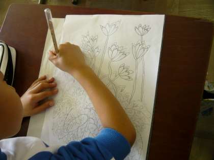 カーボン紙を使うのは初めてで,緊張した様子でがんばっていました。