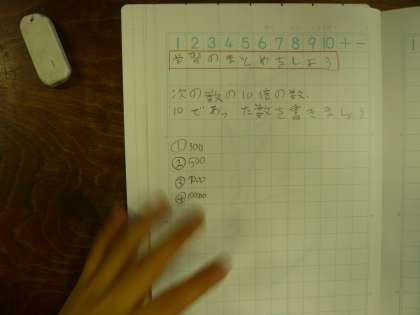 この単元では,数直線や10倍100倍の数などを学びました。