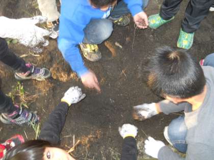 子どもたちも「これじゃ,いもほりじゃなくて土ほりや〜」と落胆の声をあげていました。