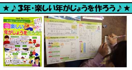 日本郵便の年がじょうテキストを使って,年賀状の学習をしました。