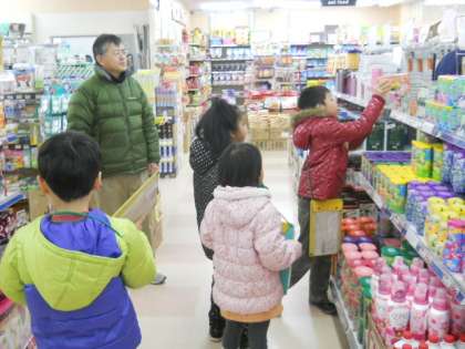 今日はスーパーに行って,家族から頼まれた品物がどこにあるか,値段はいくらか確かめました。お互いの買う物を,「へぇ〜」「あっ,うちにもある!」などと興味深そうに見ていました。