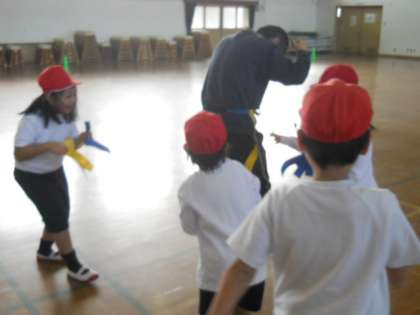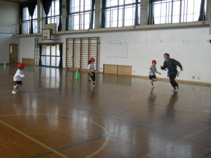 先生を追い掛け回して体育館を走り回り,とても楽しそうな子ども達でした。