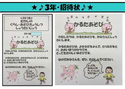 1年生にむけて,≪むかしのくらし・あそびきょうしつ≫をひらくための招待状です。