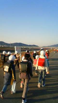 おはようございます!! 美豆小学校では,月に一度「ヘルメット着用登下校」があります。昨日は避難訓練がありましたので,ヘルメットをかぶって帰りました。今朝は,ご覧のようにヘルメットを着けて登校しました。