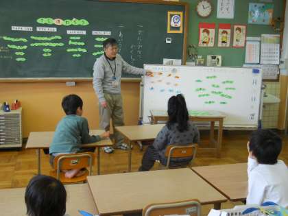 今回は助詞の「は」「が」「を」などを使って言葉をつなげ,文作りをしました。