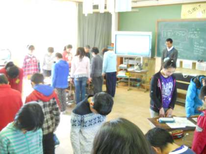 その後,東日本大震災で犠牲となった方々への弔意を示す黙祷を捧げました。1分間しずかに犠牲者の方々の冥福をお祈りしました。なお,本校の災害時引き渡し訓練実施のため,地震が起こった時刻14:46ではなく,シェイクアウト訓練の直後に黙祷を捧げました。