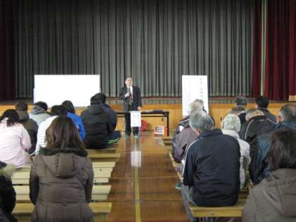 参加していただいた方々も,本校教職員をはじめ,放課後まなび教室のスタッフの皆様,PTA役員の皆様,地域各団体の皆様など総勢80名ほどの参加になりました。思った以上の多数の参加をいただき,まことにありがとうございました。特に,この日はこの冬一番の冷え込みで会場の体育館もいくらストーブをたいても,足元から深深と冷え込む悪条件でした。そんな条件にもかかわらず参加いただいた皆様には心からお礼申し上げます。でも,ご講演の後,話を聞かれた皆様のお顔はとてもさわやかでまた明日から頑張ろうという気持ちがあふれていたように思います。