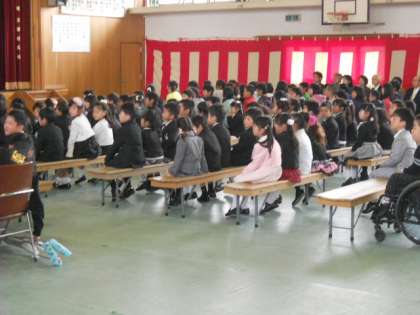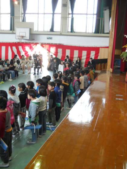 終わりには2年生が登場して「お迎えの言葉」のプレゼント☆子どもたちはそのお蔭で,楽しみにしていた学校生活がもっともっと楽しみになったようです。