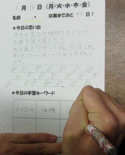 その日の学校生活の思い出と学習キーワードを書き残しています。