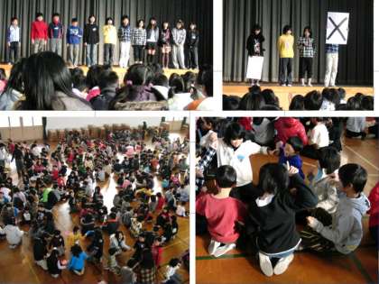 それぞれのたてわりグループが輪になって,楽しくゲームをすすめました。