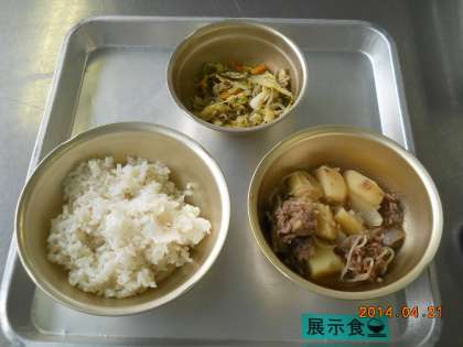 4月21日の献立は,「麦ごはん・肉じゃが・ごま酢煮」でした。