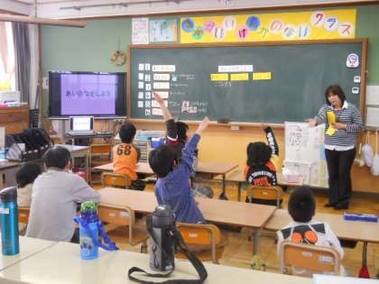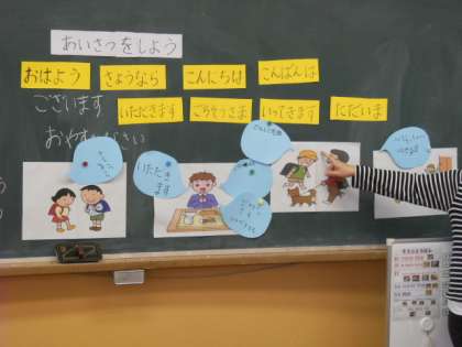 いろいろなあいさつを確認した後,みんなであいさつのロールプレイングをしました。 みんなしっかりとあいさつができました。