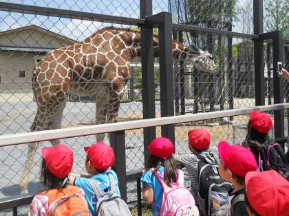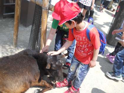 気持ちのいいお天気の中,子どもたちは,大喜びで動物を見ていました。ふれあい広場では,ヤギやヒツジにさわることができ,「あったかい!!」と優しくなでる姿が見られました。その他に,ライオンや像,キリンなど,子どもたちのお目当ての動物もしっかりとみることができ,大満足の一日でした。