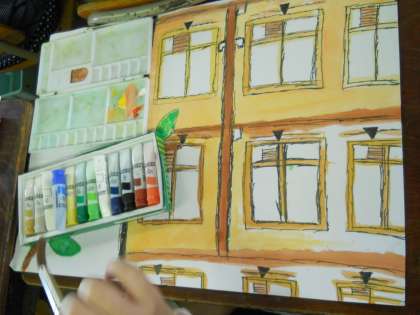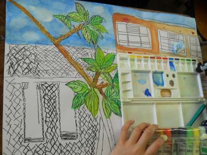 現在,図工科では,一本の枝葉と自分たちが日々学んでいる校舎の絵を描いています。細かなところまでしっかりと見ながら,特徴をとらえ忠実に描いたり,自分のイメージや世界観を膨らませて少し実際とは違う表現を行ってみたりと一人一人とても素晴らしい作品を描くことができています。また,6月の休日参観には掲示しますので,その時に子どもたちが描いた『わたしの学び舎』をご覧ください。