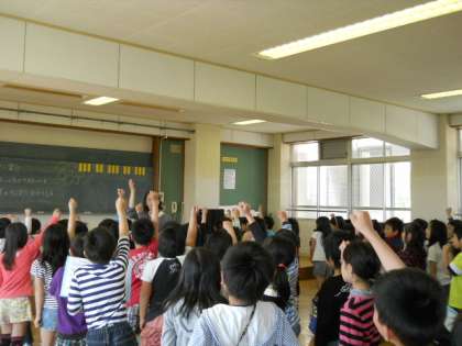 1年生を迎える会の練習を始めました。元気いっぱいに歌声を響かせながら,