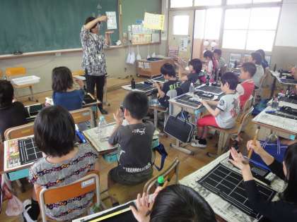 いよいよ本番の今回は,一画ずつ教師と同じスピードで書いて確認してから,