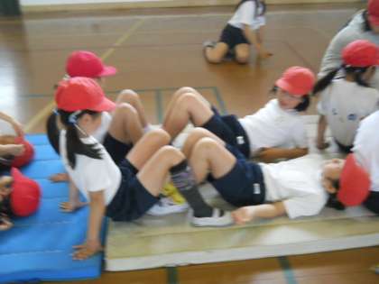 体力テストをしました。上体起こし・立ち幅跳び・反復横跳び・長座体前屈・ソフトボール投げ