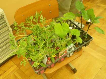 みんなで何を育てるか話し合った結果,スイカ,ナス,キュウリ,トウモロコシを育てることになりました。