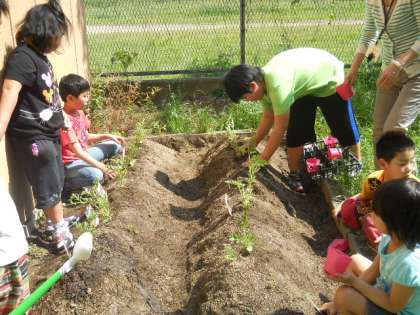 つばさ学級では,畑やプランターで1年を通して野菜を育てています。