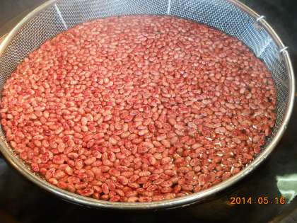 “金時豆の甘煮”は,三温糖としょうゆでコトコトじっくり煮ました。いんげん豆の仲間である金時豆は,煮豆のほかに洋風の煮込み料理にもよく使われます。ほんのり甘味のある金時豆を味わって食べていました。